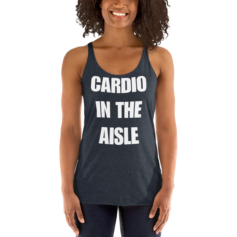 Cardio in the Aisle - Women’s Racerback Tank by Dumbbells and Hotels