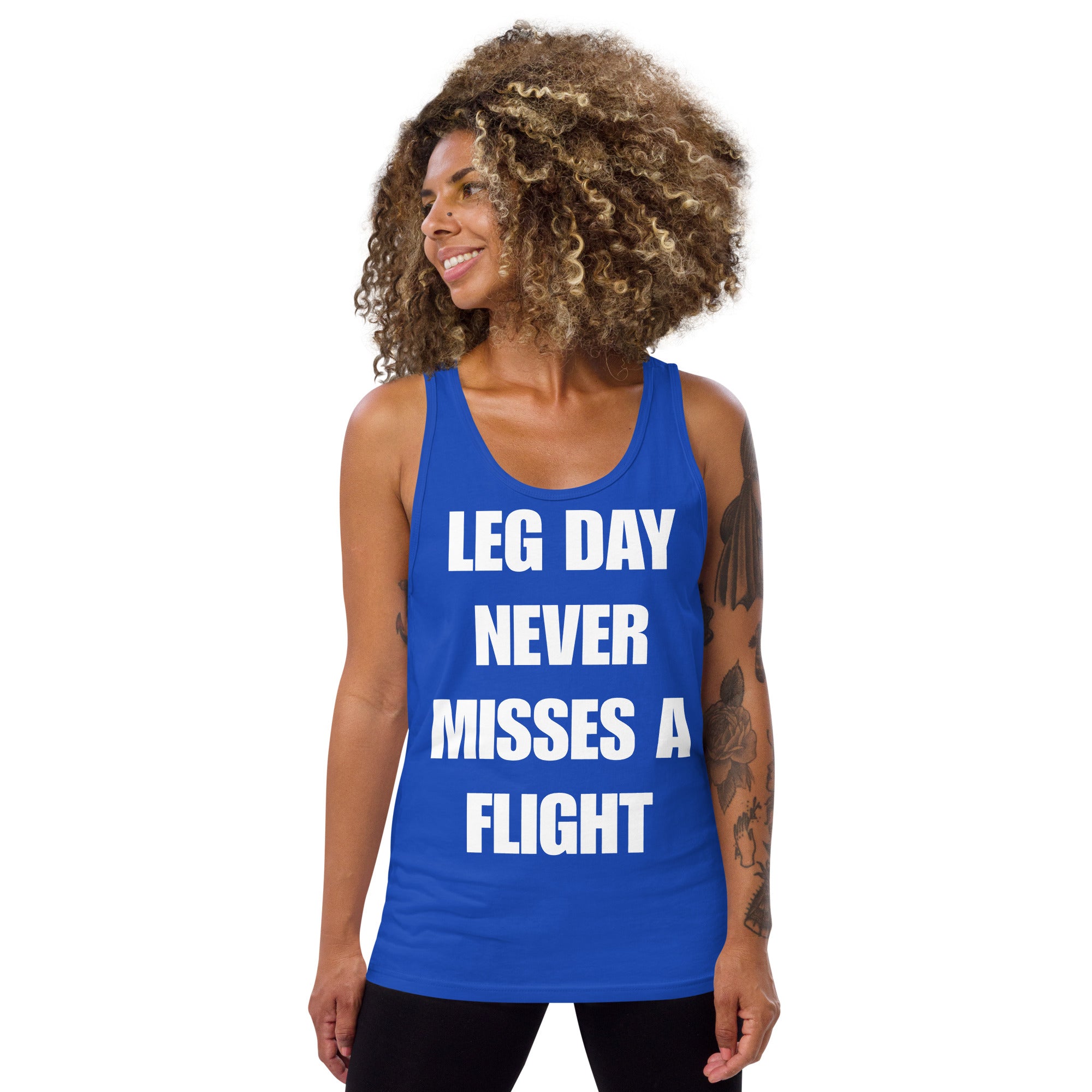 From hitting the weights to relaxing after a flight, the Leg Day Never Misses a Flight tank top is as dynamic as your lifestyle. Pair it with workout shorts for gym days or jeans for a sporty-casual look that’s perfect for any occasion.