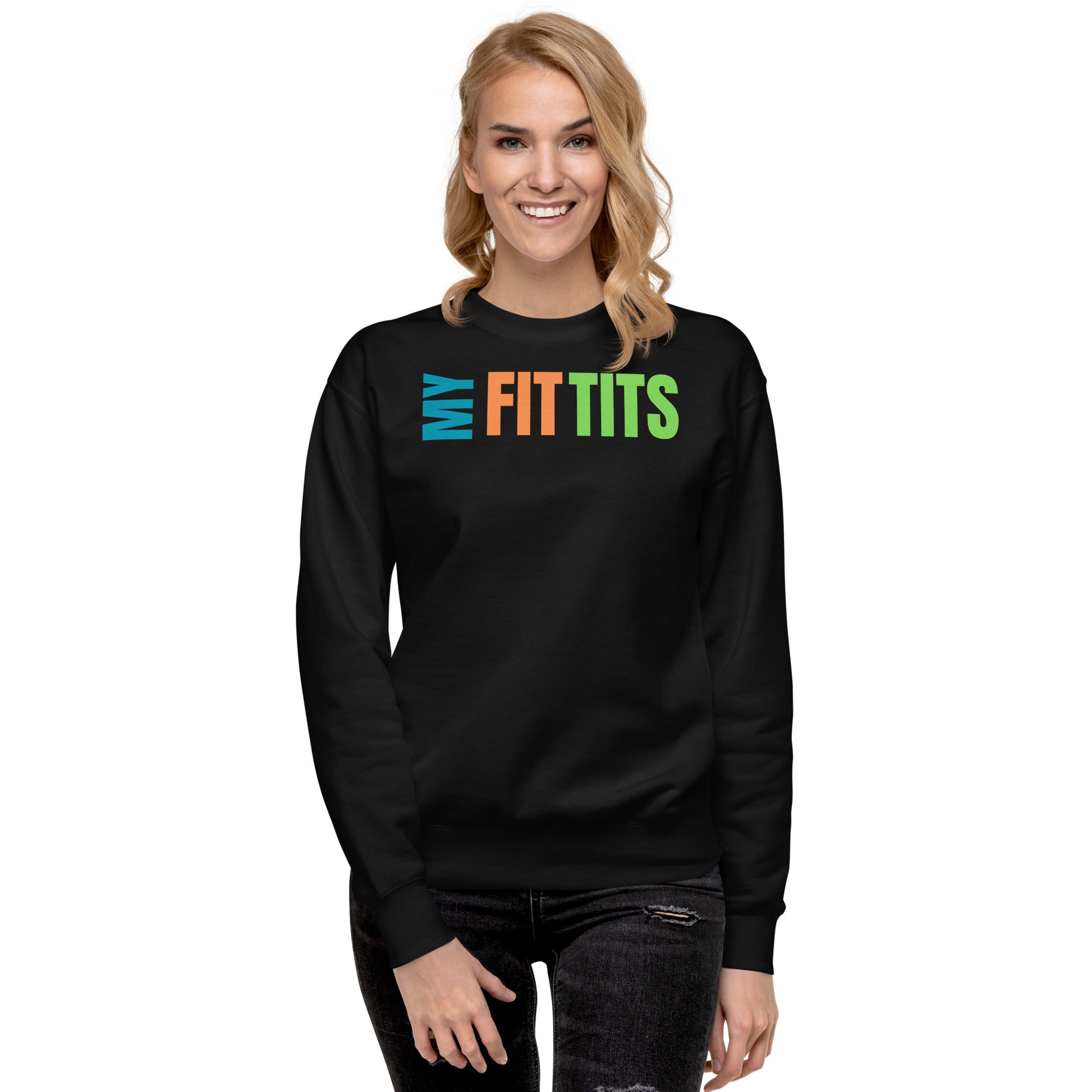 "My Fit Tits" Unisex Premium Sweatshirt by Dumbbells and Hotels