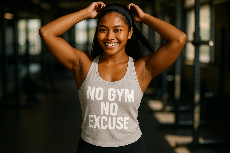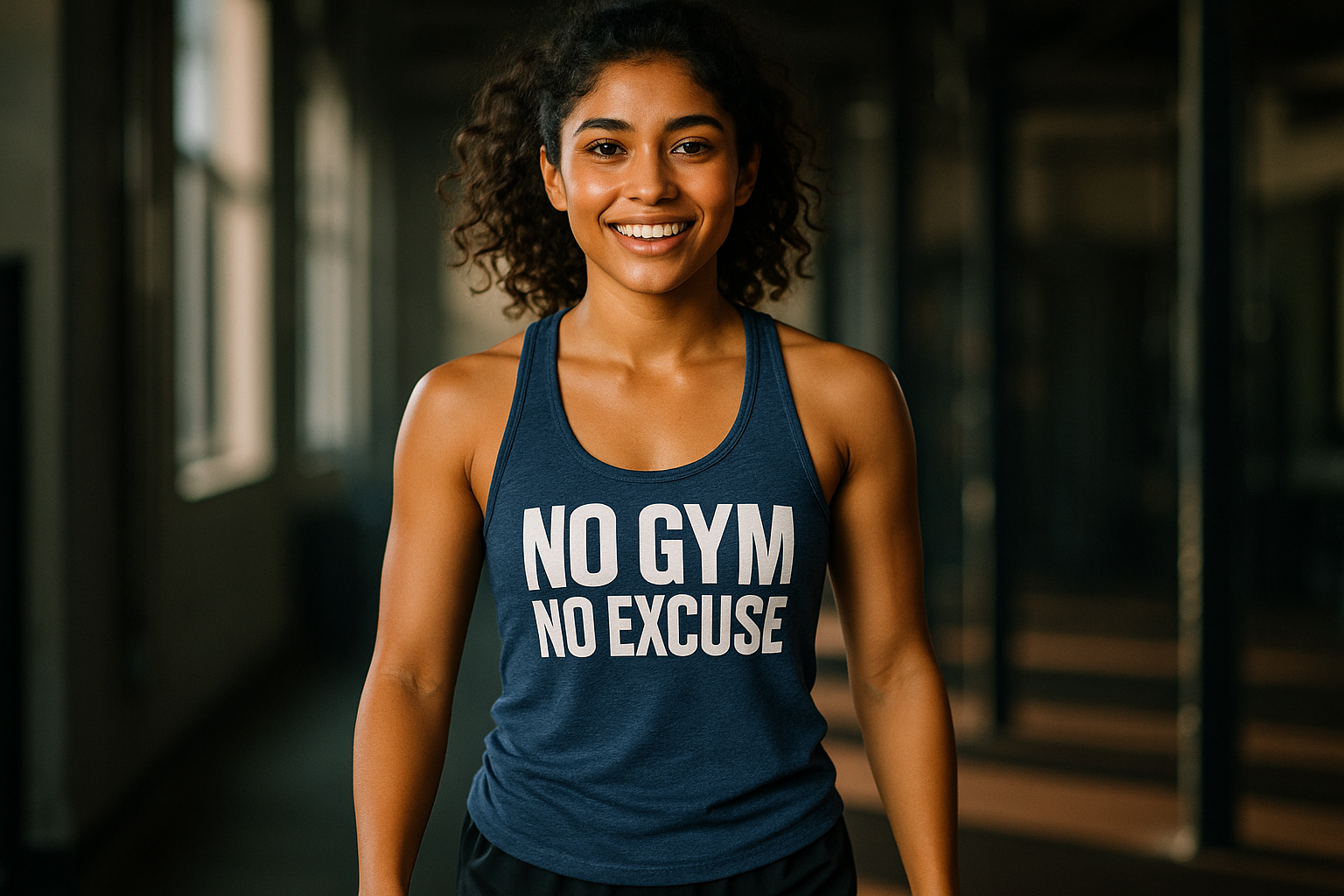 Celebrate your dedication to staying active and overcoming challenges with the No Gym No Excuse Women’s Racerback Tank. It’s more than just a tank—it’s a statement of your resilience and commitment to fitness.