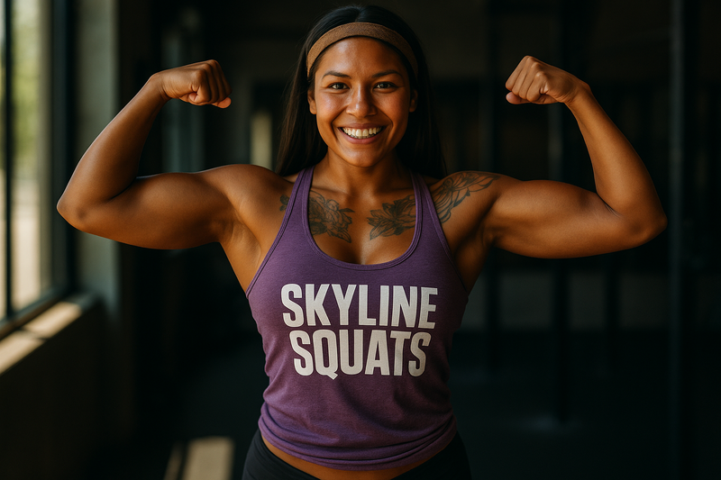 Whether you’re squatting at the gym or exploring the city skyline, the Skyline Squats racerback tank offers the versatility to match your dynamic lifestyle. Pair it with leggings, shorts, or joggers for a chic and sporty look. Its lightweight design makes it an ideal choice for layering or wearing solo during warm weather.